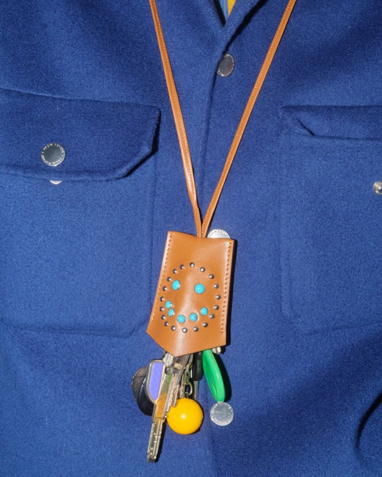Cognac avec Clous et Cabochons Turquoises