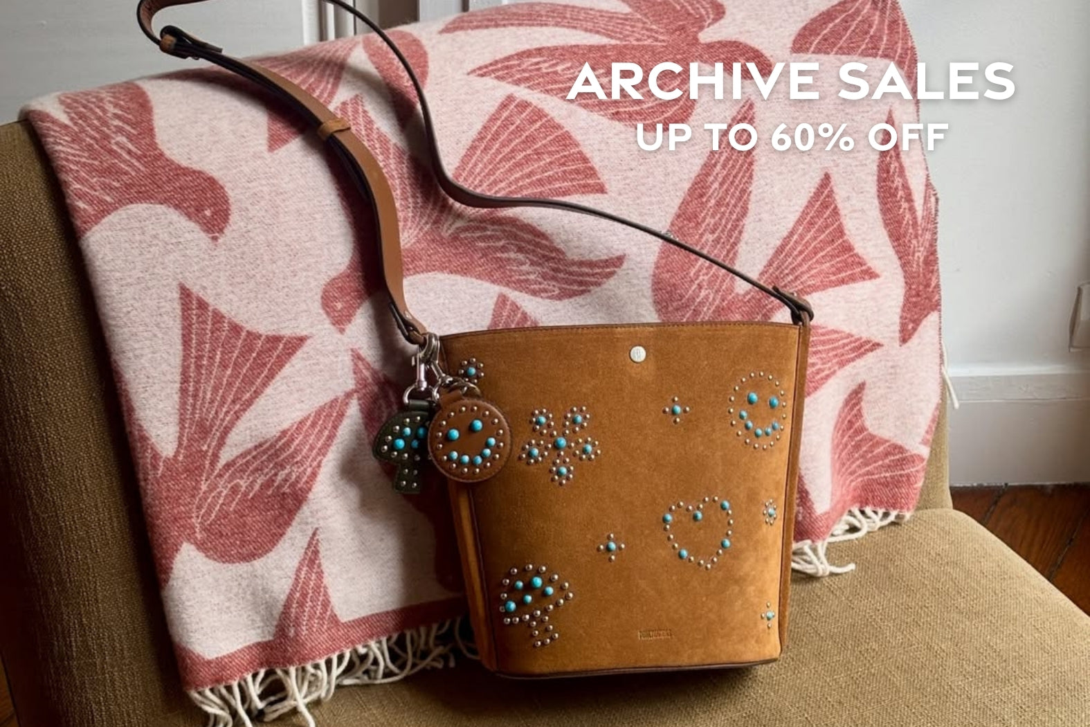 Sac Cabas en Suède Cognac avec Clous et Cabochons Turquoises