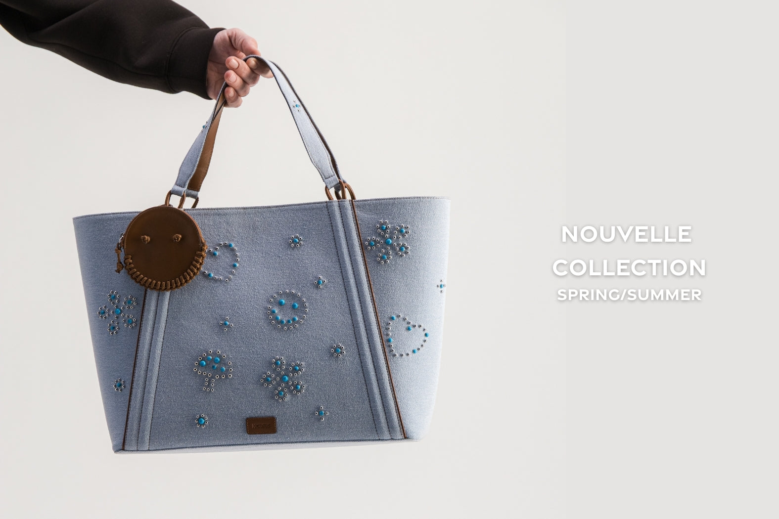 Ponctuations revisite la notion d’accessoire. En cuir, subtilement sublimé d’un tressage en bandana de couleur. Il change tout. Ainsi nomades et urbains, nous avons les mains libres. Comme si rien n’avait été ajouté mais pourtant l’essentiel est là.